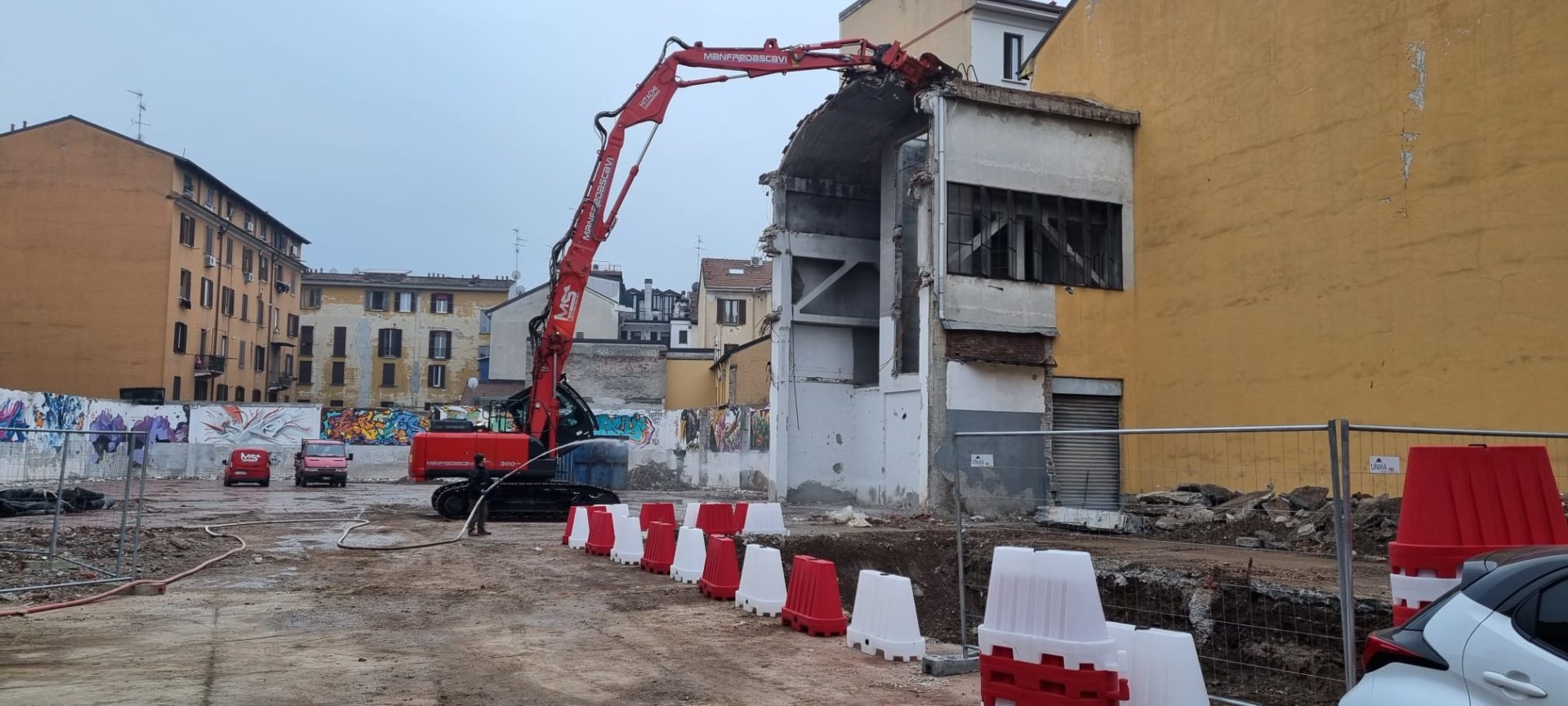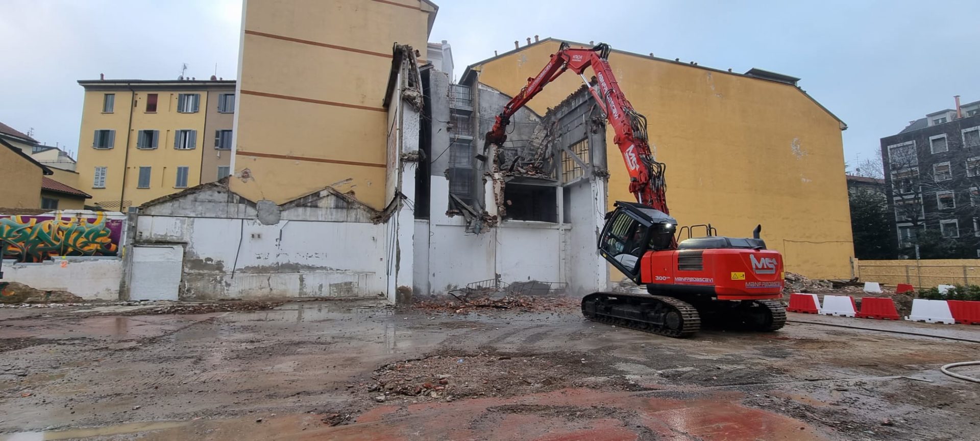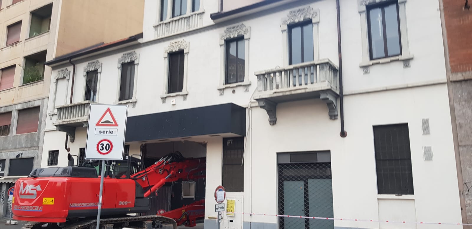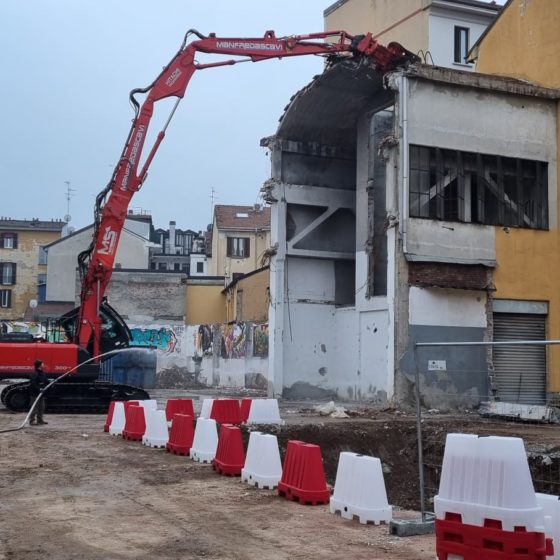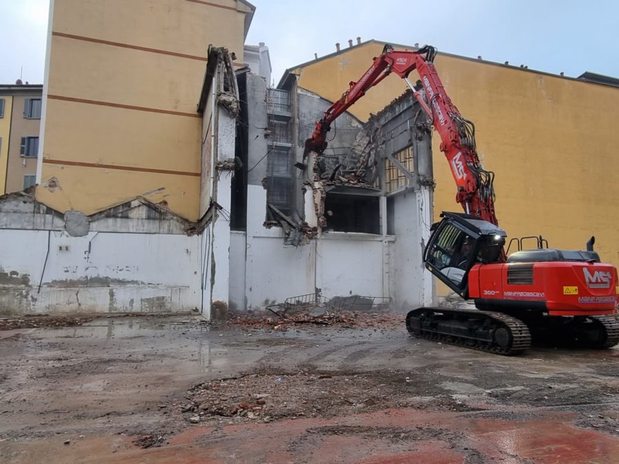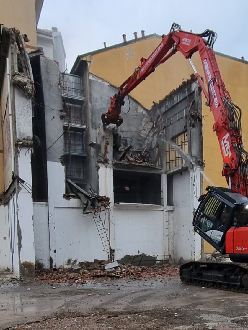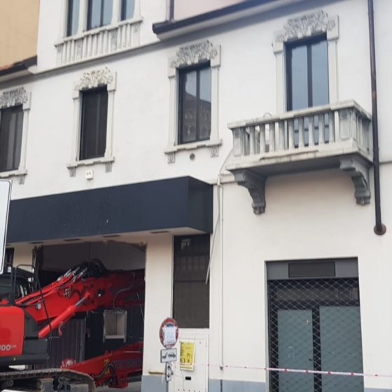 Demolizione di un corpo di fabbrica sviluppato su quattro piani fuori terra con un piano interrato e ulteriori porzioni sviluppate su un unico piano fuori terra, con locali adibiti a disco-bar.
