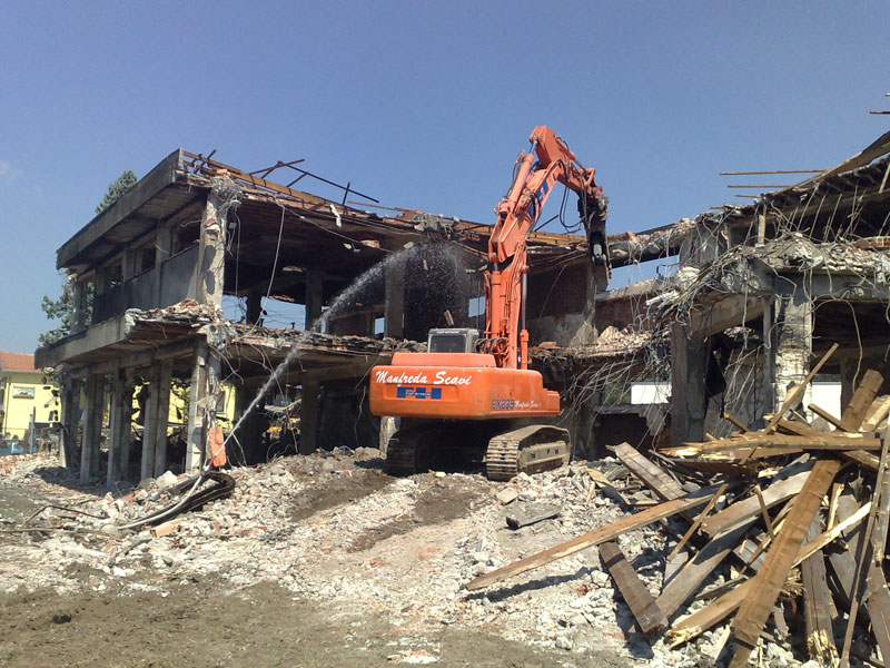Per esigenze logistiche, inizialmente è stato utilizzando l’escavatore Volvo 210 e terminato mediante l’impiego dell’escavatore FH Fiat Hitachi 235, entrambi muniti di idonea pinza frantumatrice.