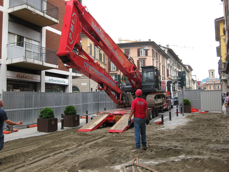 Oltre a provvedere a circoscrivere la zona con pannelli mobili, il responsabile tecnico sig. Manfreda Antonio, ha ritenuto opportuno, onde evitare di rovinare il manto stradale, di coprire il tratto di strada dove sarebbe stato scaricato l’escavatore con uno strato di sabbia.