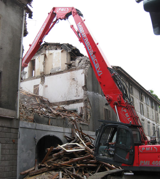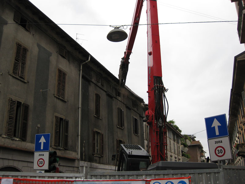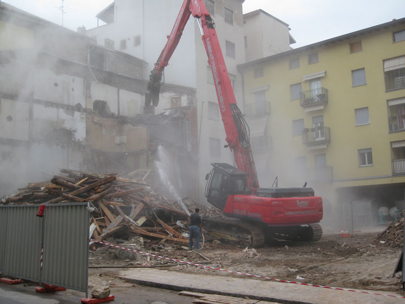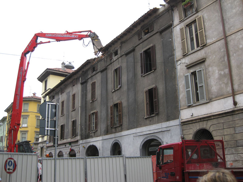 Nel giugno del 2011 abbiamo avuto l’incarico di effettuare la demolizione di un edificio residenziale di due piani, nel centro abitato di Bergamo.