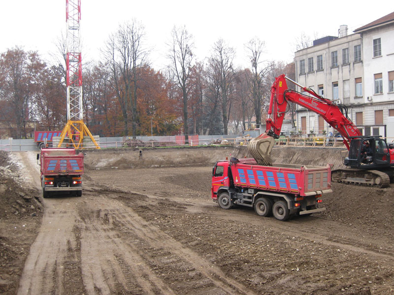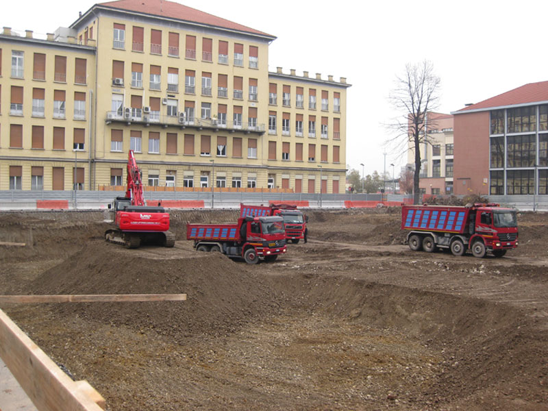Realizzazione di scavo per la costruzione di una nuova piastra per i laboratori dell’Ospedale Sacco di Milano.