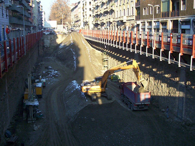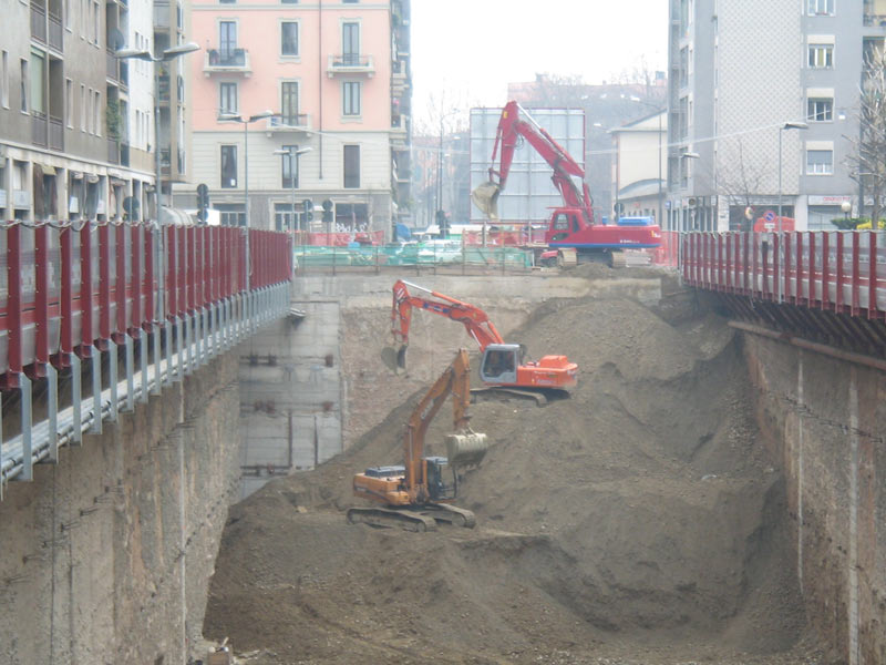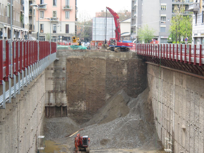 Scavo eseguito in presenza di paratie per realizzazione di parcheggi interrati.